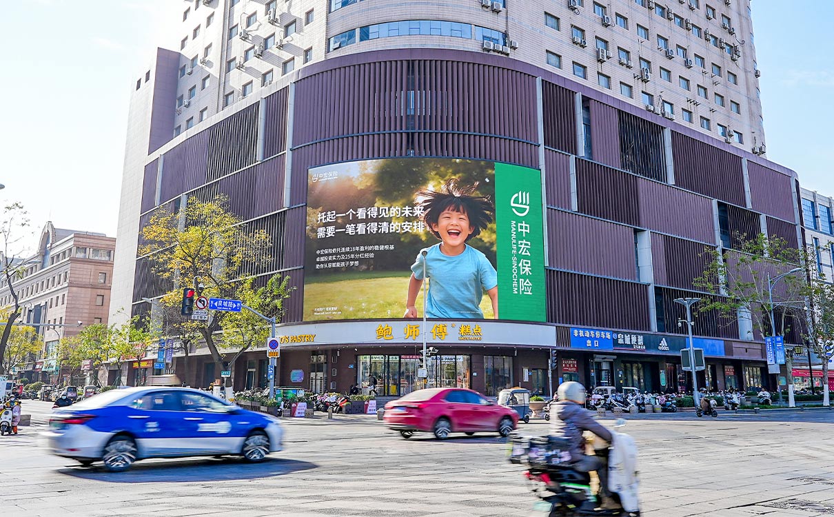 (彩云大廈(山東省政府)戶外LED屏  上刊品牌:中宏保險)