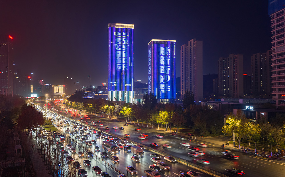 【媒體名稱】濟南經十路·城發成家財富中心雙塔燈光秀