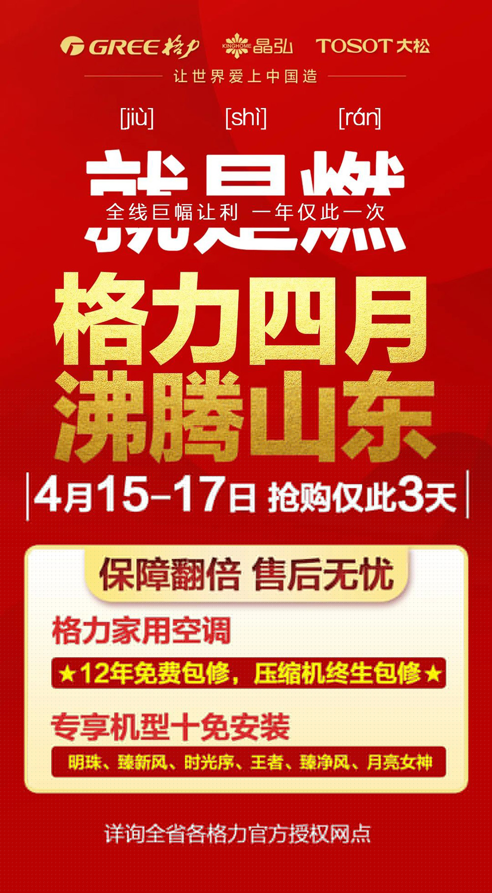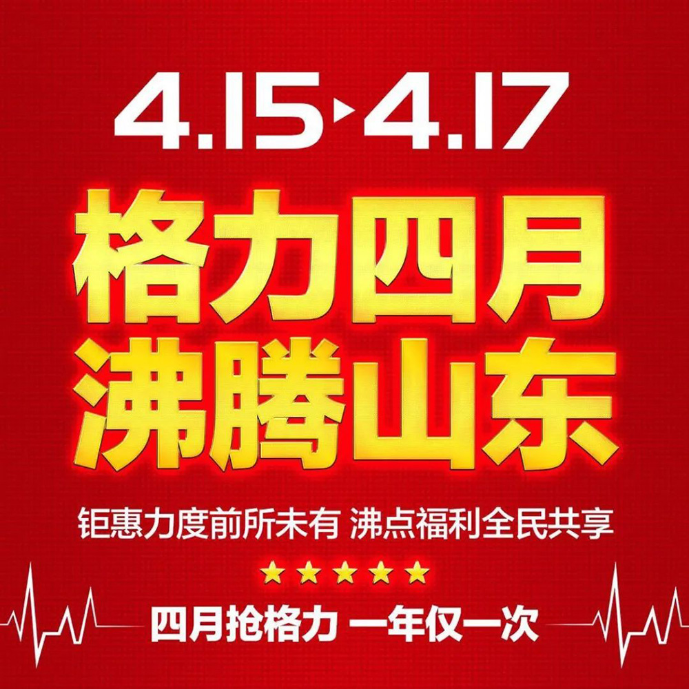買品質,選格力;買格力,就等格力四月 沸騰山東。一年一度的品質盛宴即將拉開序幕,更多沸點福利也將紛至沓來,一年一次的事情有很多,買空調就等這一次!