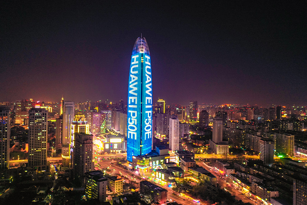 (華為集團投放濟南地標媒體--濟南綠地中心廣告)