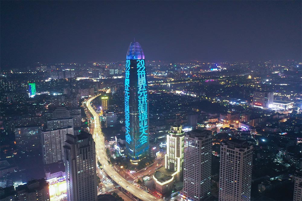 2022世界先進制造業大會投放濟南地標媒體--濟南綠地中心廣告)