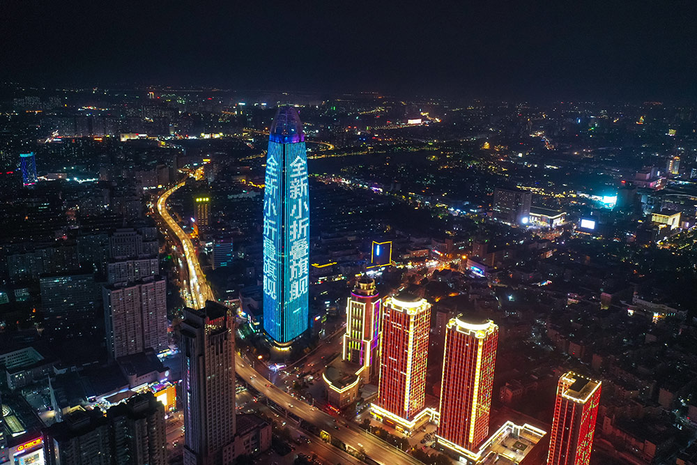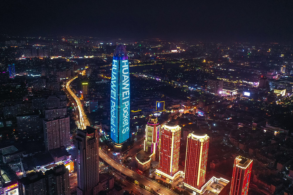 (華為Pocket S投放濟南地標媒體--濟南綠地中心廣告)