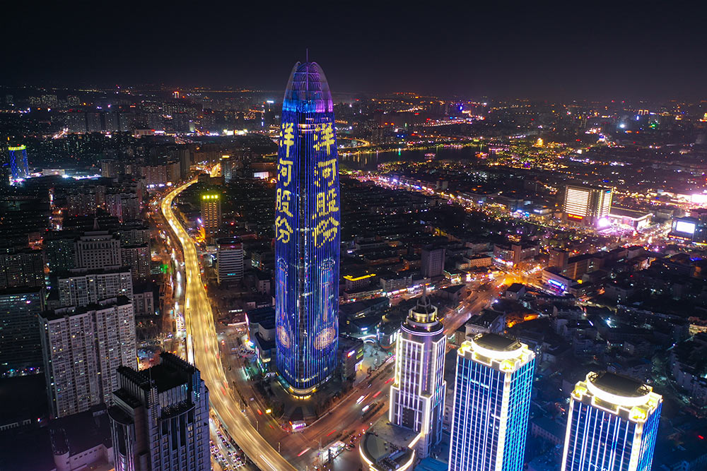 (洋河投放濟南地標媒體--濟南綠地中心廣告)
