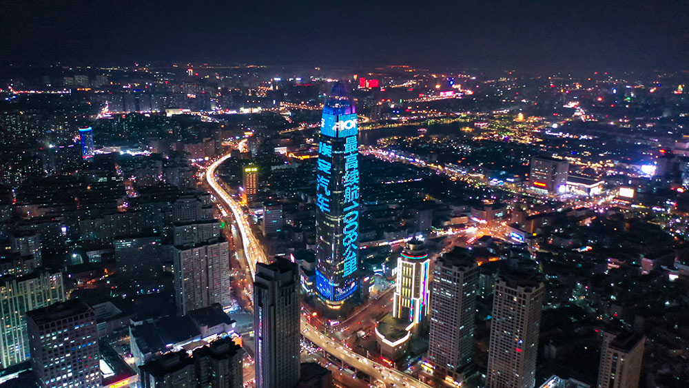 (埃安汽車投放濟南地標媒體--濟南綠地中心廣告)