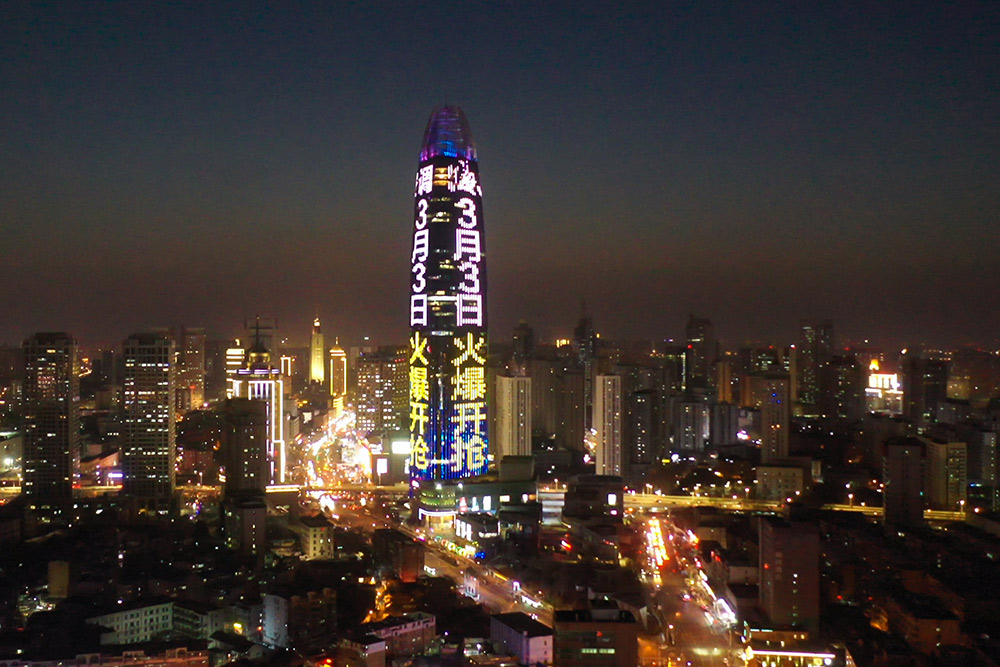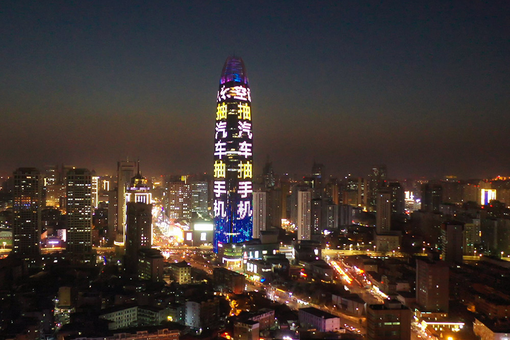 地標的戶外媒介,不僅為城市提供了全新的標記和注解,其在廣告傳播方面的價值也是顯而易見。本案由華途傳媒設計發布執行。不僅有恢宏大氣的品牌露出,而且傳播效應堪稱轟動全國!獨特或者高聳的建筑成為地標戶外勿庸贅述,進入信息時代,濟南城市地標媒體燈光秀廣告助力品牌新高度。