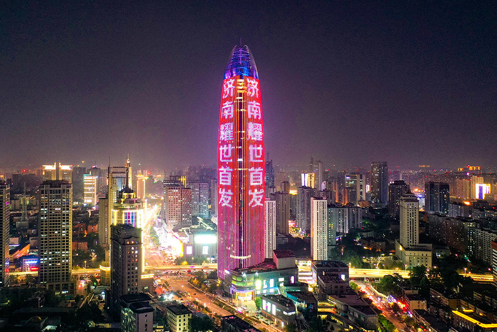濟南地標(biāo)媒體燈光秀(即,簡稱綠地高媒),是山東華途文化傳媒有限公司獨家運營的濟南地標(biāo)媒體,濟南綠地中心素有“泉城之根”、“濟南之根”之稱,面積63000平方米、呈三面環(huán)繞360度展示,具有超大面積、超強視覺沖擊、變幻豐富多樣及受關(guān)注高、視覺渲染力極大等優(yōu)勢。