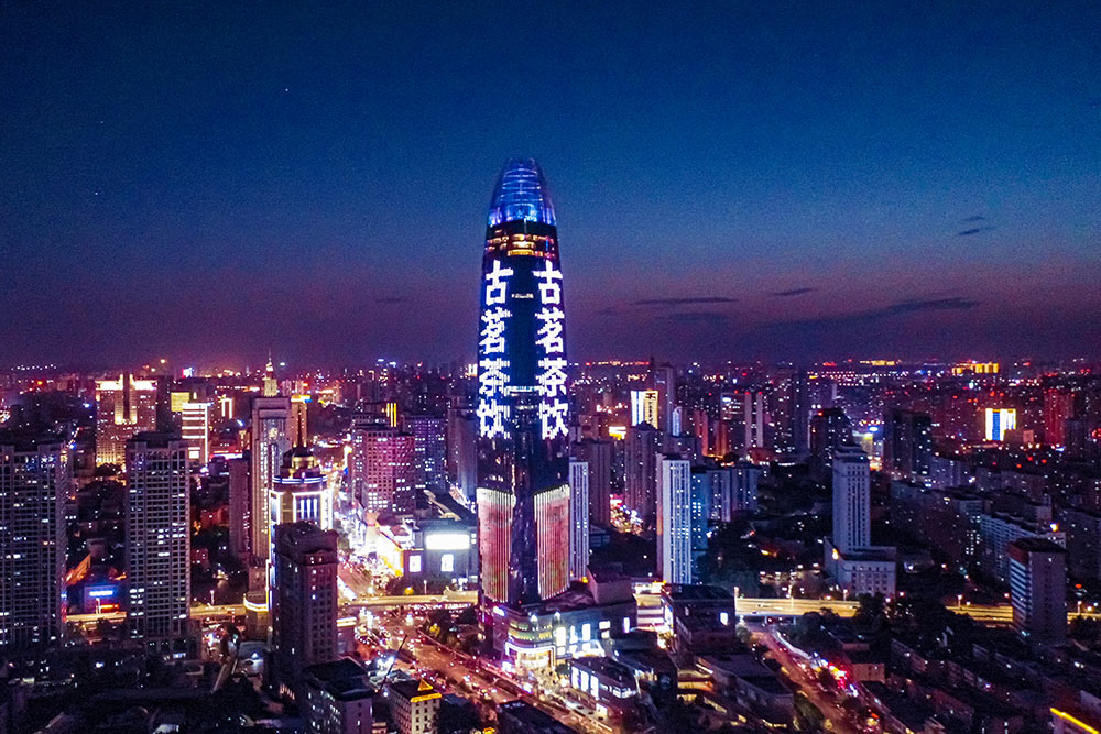 (古茗投放濟南地標媒體--濟南綠地中心廣告)