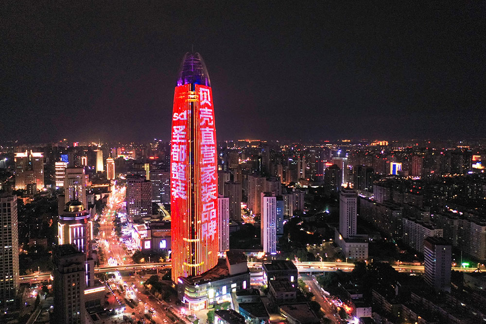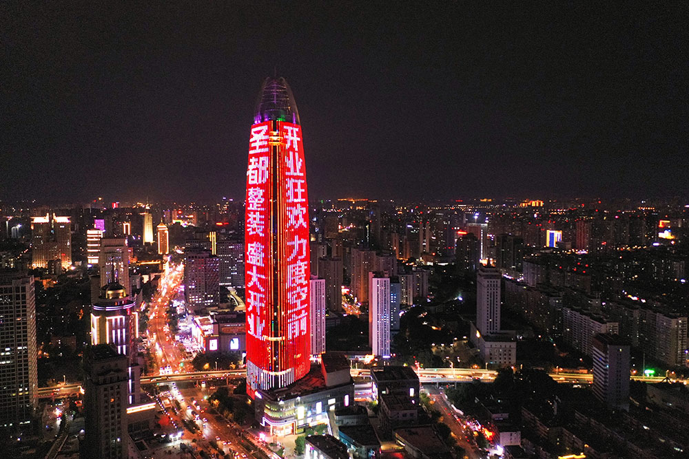 濟(jì)南地標(biāo)媒體燈光秀(即,簡稱綠地高媒),是山東華途文化傳媒有限公司獨(dú)家運(yùn)營的濟(jì)南地標(biāo)媒體,濟(jì)南綠地中心素有“泉城之根”、“濟(jì)南之根”之稱,面積63000平方米、呈三面環(huán)繞360度展示,具有超大面積、超強(qiáng)視覺沖擊、變幻豐富多樣及受關(guān)注高、視覺渲染力極大等優(yōu)勢。