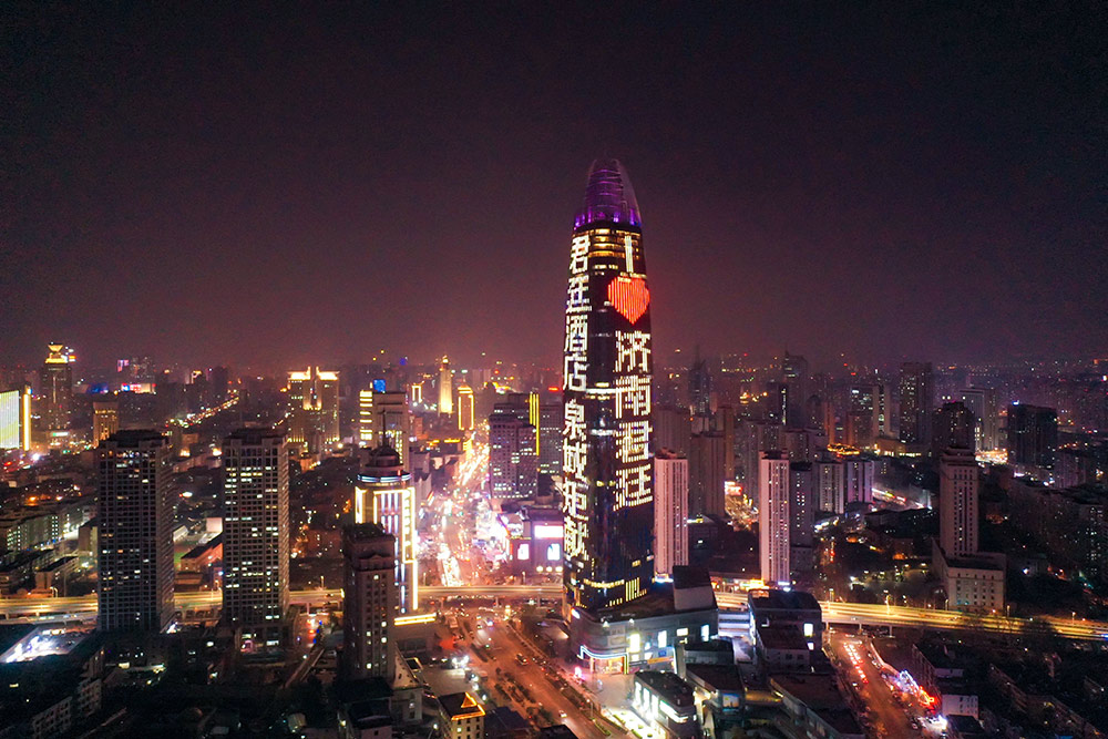 濟(jì)南地標(biāo)媒體燈光秀(即,簡(jiǎn)稱綠地高媒),是山東華途文化傳媒有限公司獨(dú)家運(yùn)營(yíng)的濟(jì)南地標(biāo)媒體,濟(jì)南綠地中心素有“泉城之根”、“濟(jì)南之根”之稱,面積63000平方米、呈三面環(huán)繞360度展示,具有超大面積、超強(qiáng)視覺沖擊、變幻豐富多樣及受關(guān)注高、視覺渲染力極大等優(yōu)勢(shì)。