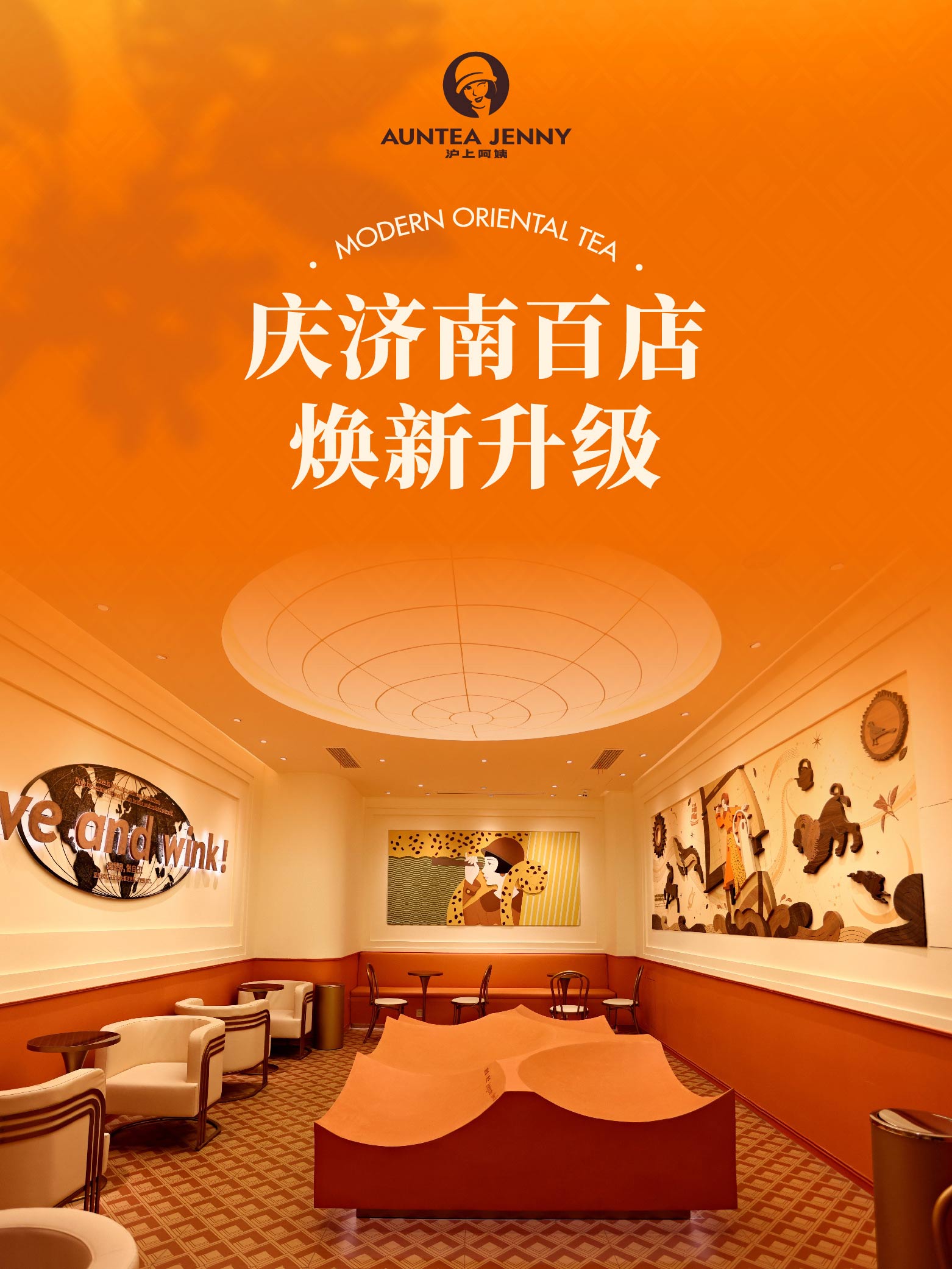 與此同時,滬上阿姨提出全新品牌理念:“Love and Wink”。官方對其闡釋是:“Love”代表著獨立、探索、融合與新生,是品牌對于自身發(fā)展路徑的堅持與追求;“Wink”則代表著品牌包容開放、獨立自信的輕松態(tài)度,是品牌與消費者之間互動與溝通的方式。5.0的門店形象上,采用幾何線條配合美拉德肌理感的空間配色,營造出一種海派都市新摩登的空間氛圍。品牌形象店以愛馬仕橙為主色調(diào),少女和豹子的元素顯得年輕、時尚、野性,吸引不少年輕人來店內(nèi)打卡。