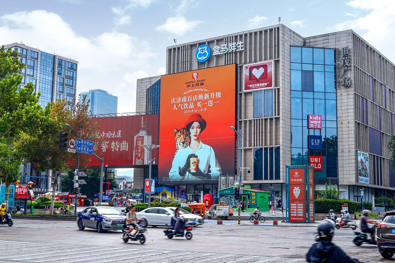 (經(jīng)十路與歷山路·裸眼3D戶外LED屏 上刊品牌:滬上阿姨)