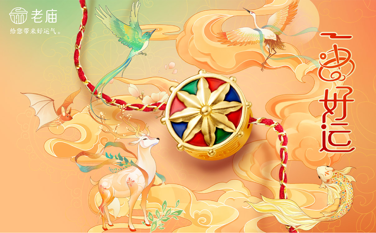 老廟從東方文化中汲取靈感,以新中式審美具象化呈現老廟好運文化,將五運概念與傳統祥瑞意象相結合打造老廟一串好運全新系列,以滿足當代年輕人對于幸福順遂、富足康寧的追求與祈愿,將心中的小小期待寄情于物,陪伴大家以真摯而熱忱的態度,積極尋求向上的力量,追逐生活中的小確幸,獲得精神上的支持與鼓勵。