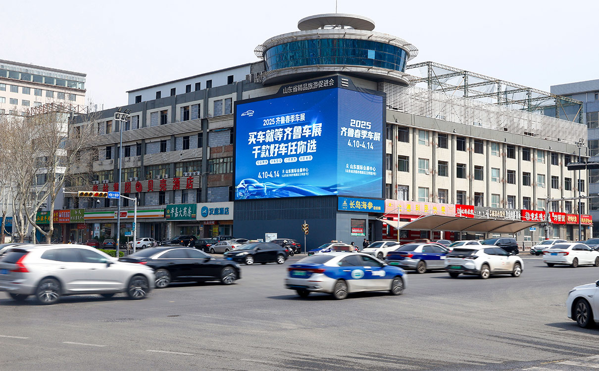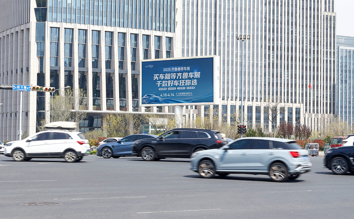 (經(jīng)十路與歷山路·裸眼3D戶外LED屏 上刊品牌:2025齊魯春季車展)
