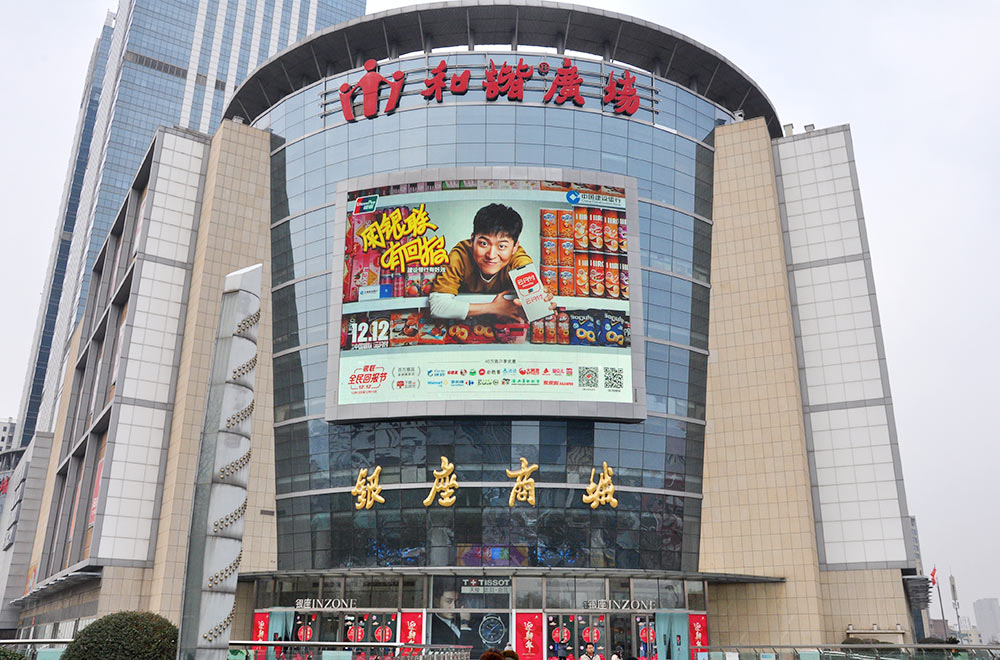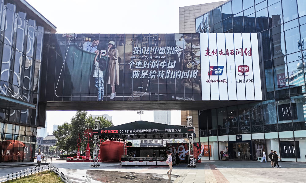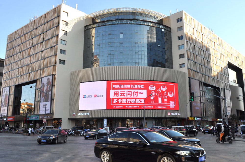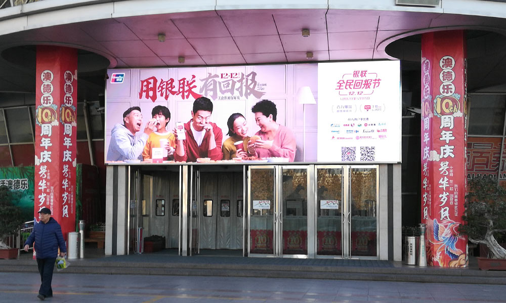 (中國銀聯投放“經十屏”銀座和諧廣場戶外LED屏廣告)