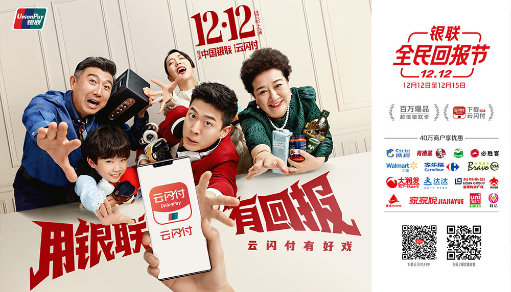 大片的主題是貫穿中國銀聯的戰略slogan“付出必有回報”,中國銀聯把這個亙古不變的真理,變成了一個節日——“全民回報節”。近期,中國銀聯通過華途傳媒,向受眾精準傳遞“12.12銀聯全民回報節”的信息,聯手40萬優惠商戶,百萬超值爆品,讓人人有回報。