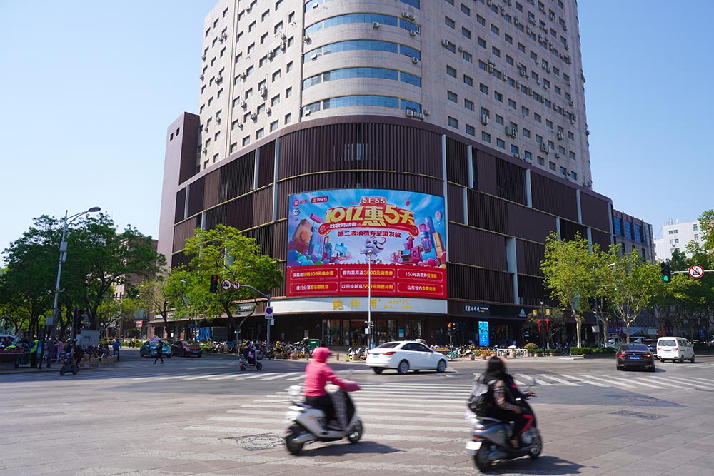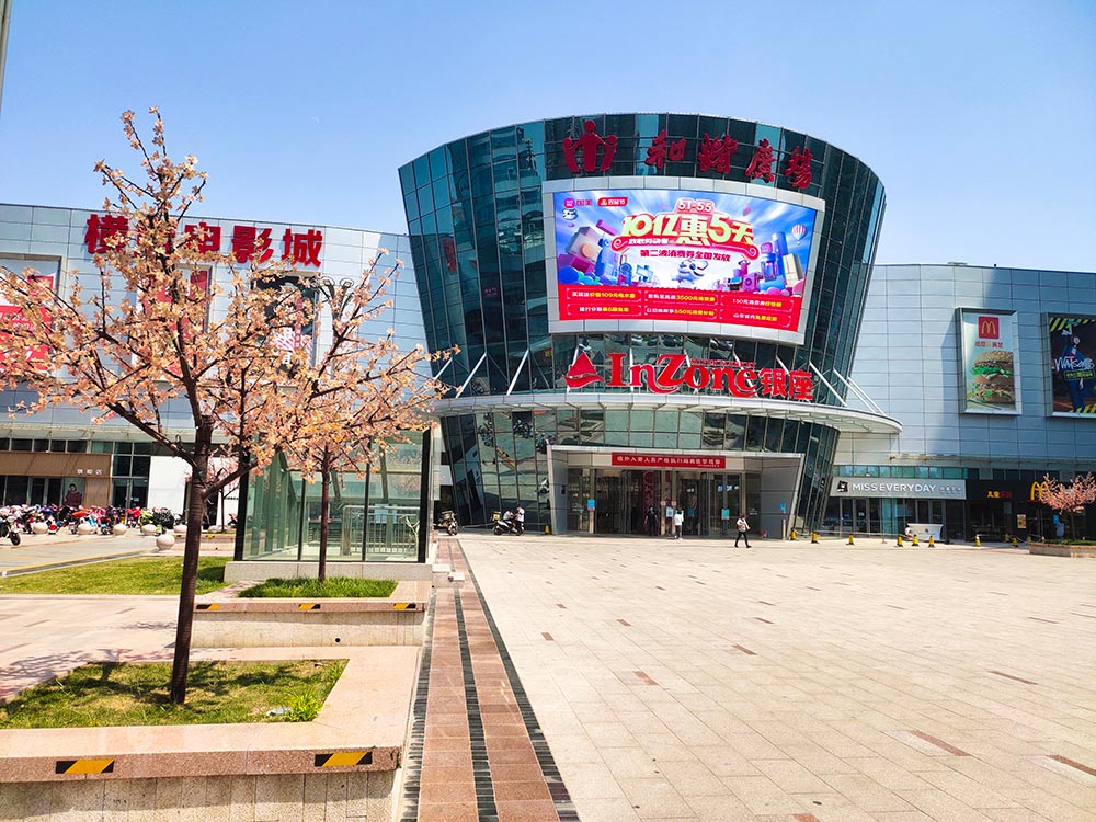 (楊柳春風投放“軍區(qū)商圈屏”銀座八一購物廣場戶外LED屏廣告)