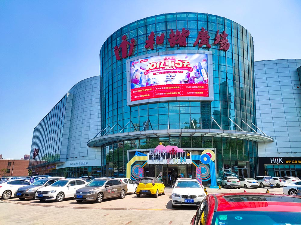 (國美電器投放“雙子屏”章丘銀座和諧廣場戶外LED屏)