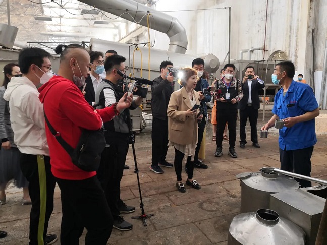 在釀酒車間,幾十臺釀酒設備一字排開,幾百名釀酒工人繁忙操作的場景,引得網友紛紛留言贊嘆。著裝統一的釀酒師傅們,正有條不紊的加曲、拌料、裝甑、蒸酒,熱氣騰騰的車間里到處彌漫著醉人的酒香,負責接酒的工人師傅更是在鏡頭前,傳授起如何看花摘酒的技藝。通過直播鏡頭,網友們現場見證了糧食變成美酒的過程。