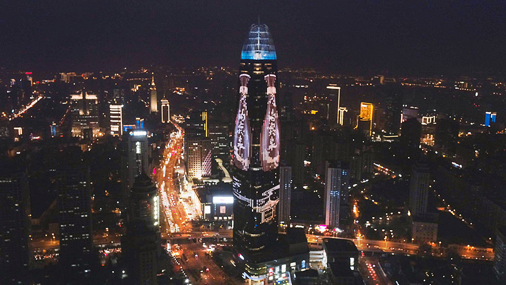 (趵突泉酒業投放濟南地標媒體-濟南綠地中心廣告)