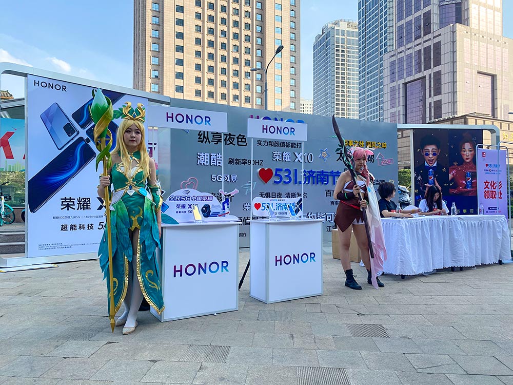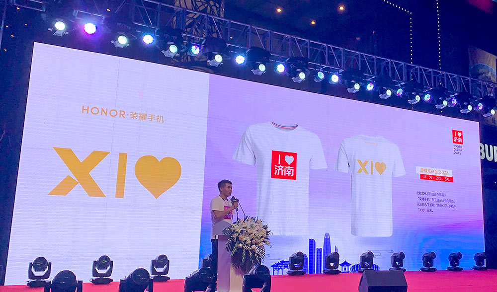 2020年5月31日晚19:30分,榮耀手機在由齊魯周刊社、山東發展網和山東華途文化傳媒有限公司聯袂主辦的“首屆濟南節啟動及標識發布暨愛濟南城市文化衫發行節”活動中,展示榮耀X10 5G手機并推出榮耀炫白金濟南城市文化衫。