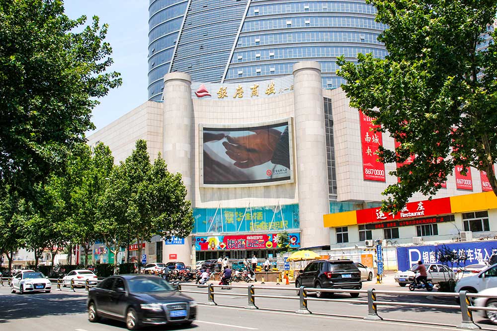 (富德生命人壽投放“軍區(qū)商圈屏”銀座八一購物廣場戶外LED屏廣告)