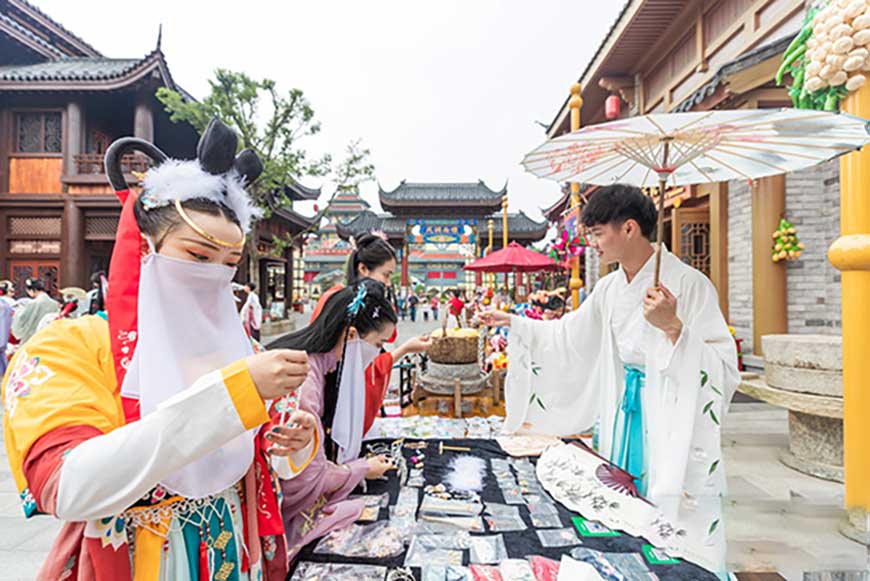 據了解,端午小長假期間,泰安方特還將在《聊齋》項目區域打造古風市集,屆時將有婀娜多姿的古風舞蹈和熱情豪放的噴火秀上演,讓廣大游客近距離感受傳統文化的獨特魅力。喜愛漢服文化的游客,還可以身著華美的漢服,置身于古風背景中盡情拍照體驗,留下別具一格的游園記憶。