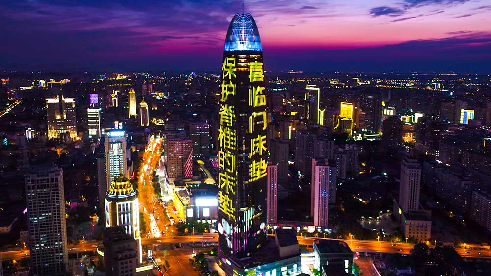 (喜臨門投放濟南地標媒體-濟南綠地中心第一高媒廣告)