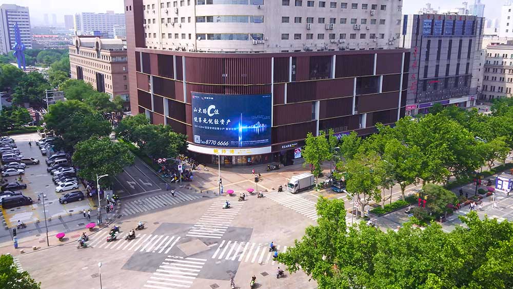 (中建東孚投放“省俯”濟南泉城路彩云大廈戶外LED屏廣告)