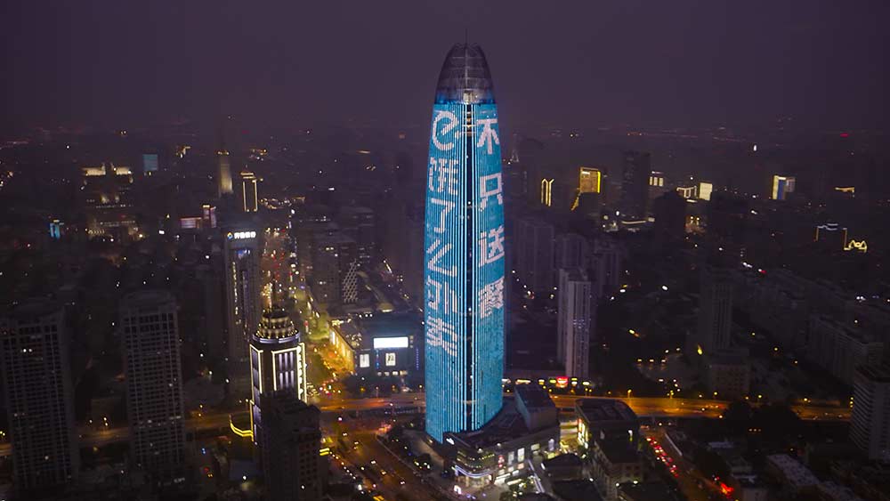 (餓了么投放濟南地標媒體-濟南綠地中心第一高媒廣告)