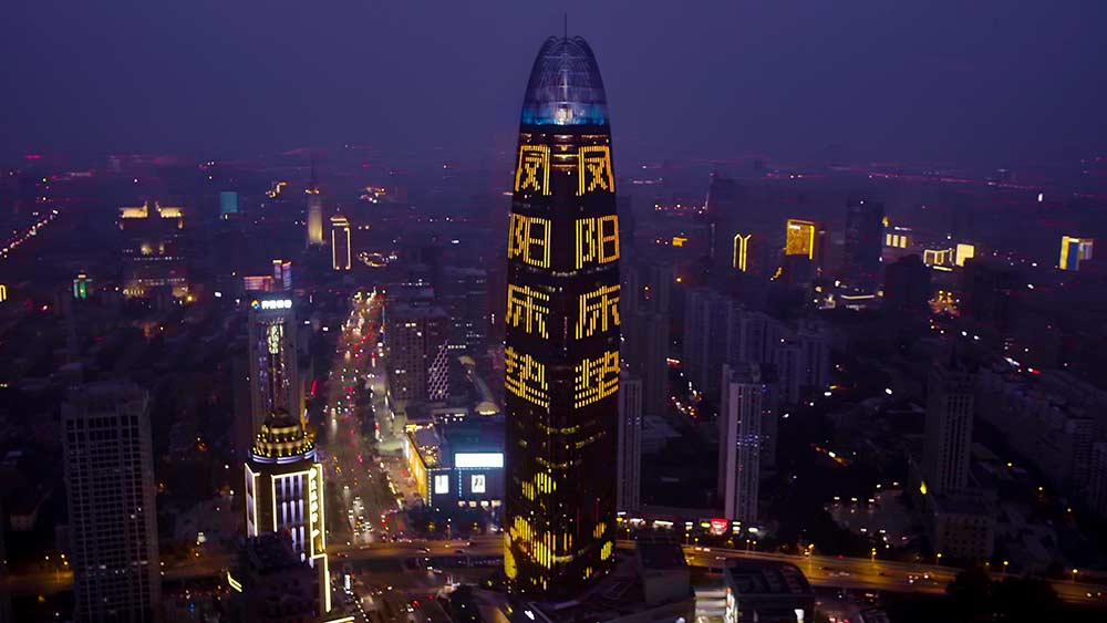 (鳳陽家居投放濟南地標媒體-濟南綠地中心第一高媒廣告)