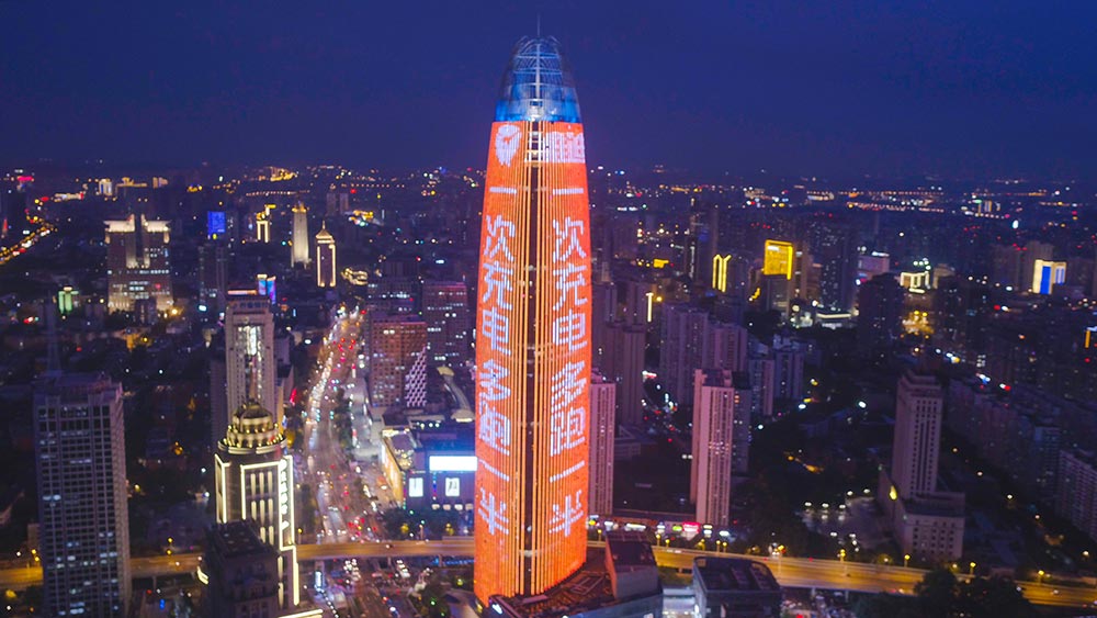 (雅迪電動車投放濟南地標媒體-濟南綠地中心第一高媒廣告)
