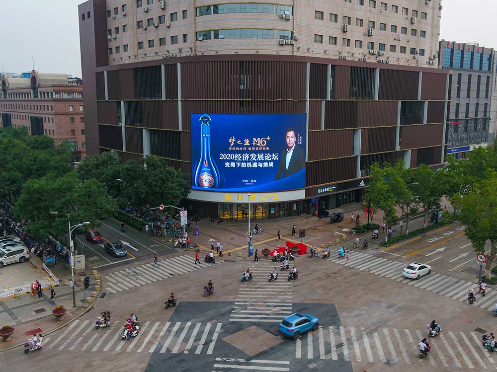 (洋河酒業投放“省俯”濟南泉城路彩云大廈戶外LED屏廣告)