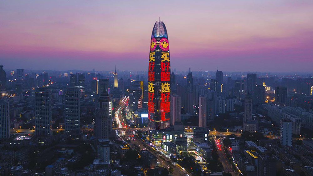 (好蟹匯投放濟南地標媒體-濟南綠地中心第一高媒廣告)