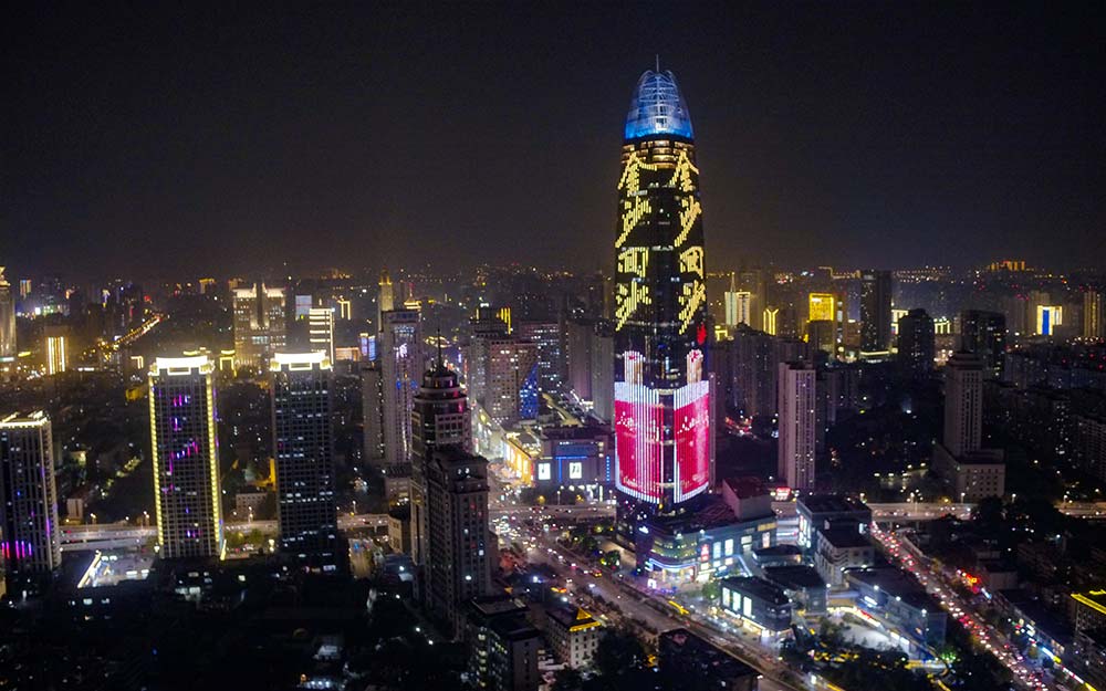 濟(jì)南地標(biāo)媒體燈光秀(即,簡稱綠地高媒),是山東華途文化傳媒有限公司獨(dú)家運(yùn)營的濟(jì)南地標(biāo)媒體,濟(jì)南綠地中心素有“泉城之根”、“濟(jì)南之根”之稱,面積63000平方米、呈三面環(huán)繞360度展示,具有超大面積、超強(qiáng)視覺沖擊、變幻豐富多樣及受關(guān)注高、視覺渲染力極大等優(yōu)勢。