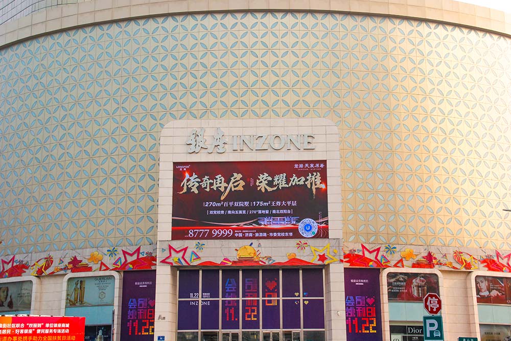 (龍湖·天宸原著投放“旗艦商屏”山東銀座商城旗艦店戶外LED屏廣告