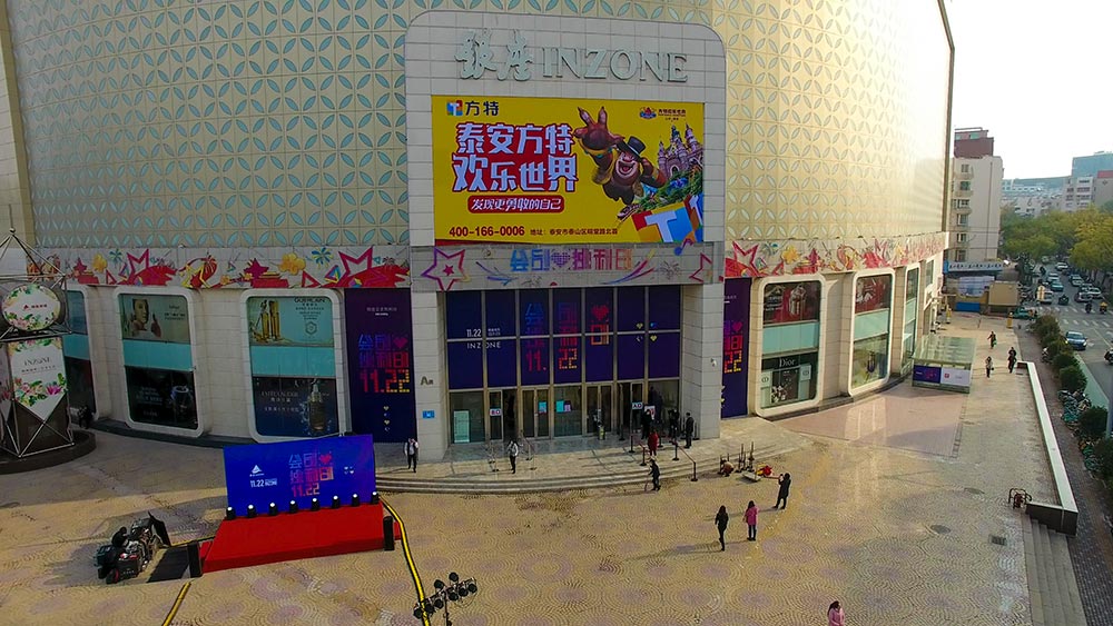 (華強(qiáng)方特投放“旗艦商屏”山東銀座商城旗艦店戶外LED屏廣告)