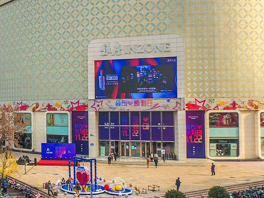 (瀘州老窖(國窖1573)投放“旗艦商屏”山東銀座商城旗艦店戶外LED屏廣告)