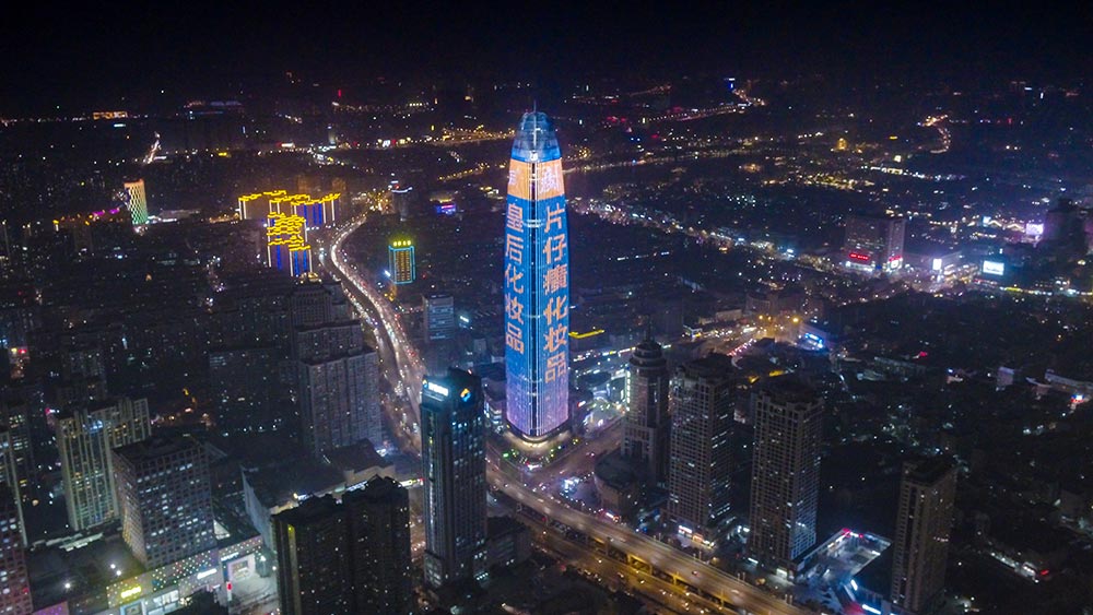 (片仔癀化妝品投放濟南地標媒體-濟南綠地中心第一高媒廣告)