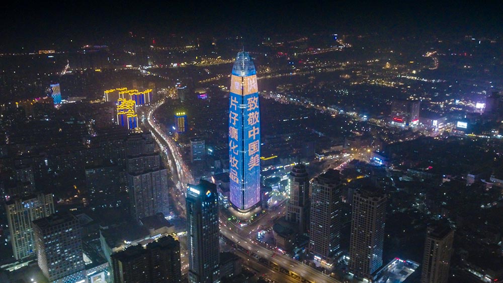 2020年12月23日當晚,在濟南綠地中心的地標燈光秀巨幕上,閃耀著“片仔癀化妝品、皇后化妝品、致敬中國美”的字幕,一時間引起了泉城人民的關注。片仔癀化妝品亮相濟南綠地中心,國華之光驚艷泉城!致敬中國美!