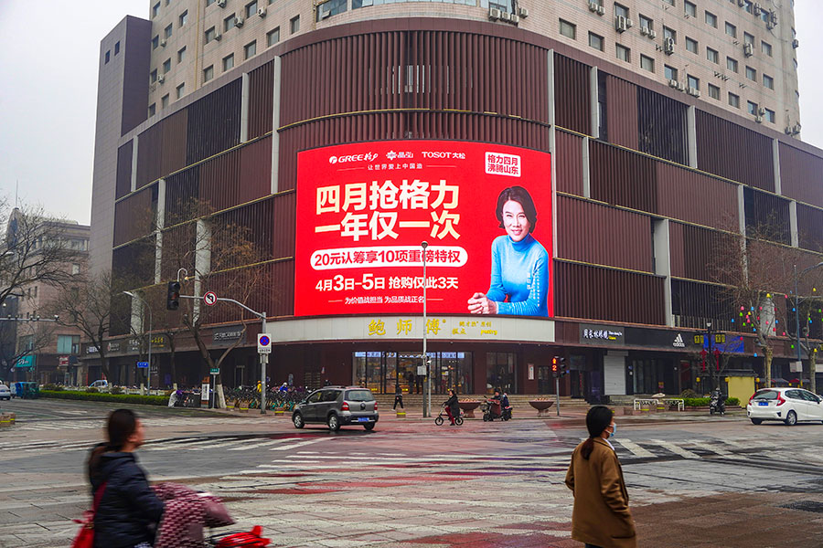 (格力投放“省俯”濟南泉城路彩云大廈戶外LED屏廣告)
