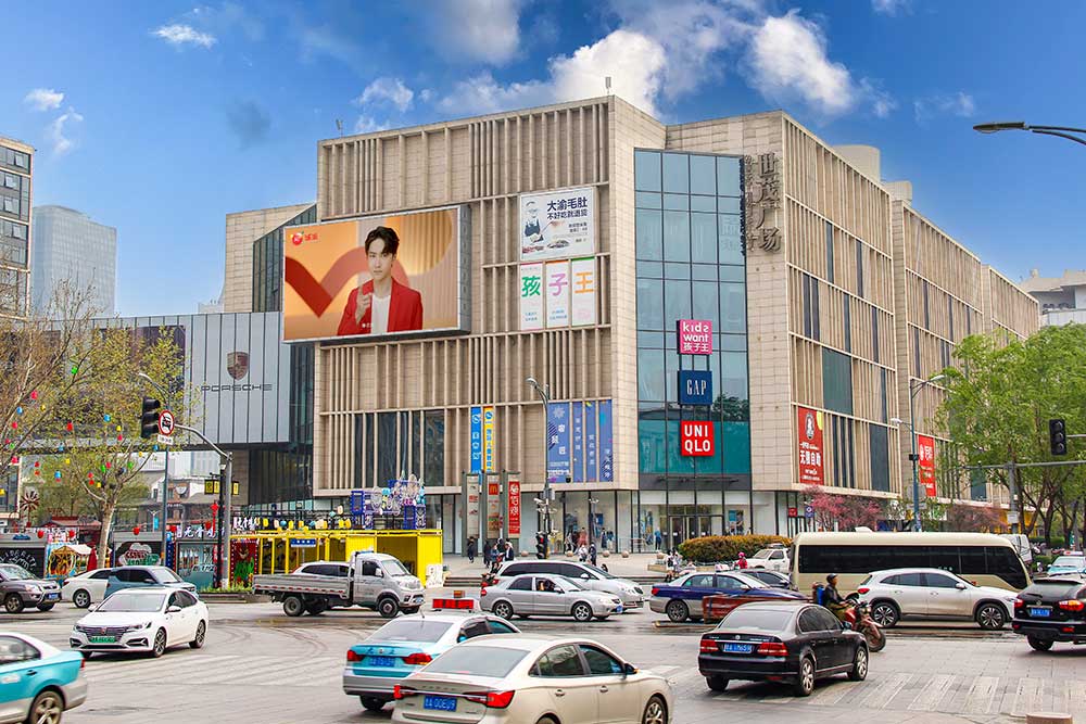 (中國聯通投放“網紅屏”世茂廣場(寬厚里)戶外LED屏廣告)