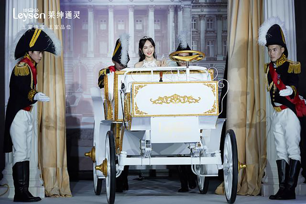 Leysen萊紳通靈真愛官唐嫣身著精致禮服,頭戴古董王冠,佩戴王室莊園系列珠寶,乘坐王室馬車,在騎士的護(hù)送下驚艷亮相。并與恒隆廣場(chǎng)董事、總經(jīng)理、Leysen萊紳通靈首席增長(zhǎng)官,首席營銷官等共同揭幕王室莊園系列、王室克拉鉆定制全新產(chǎn)品上市,見證閃耀時(shí)刻,粉絲們歡呼聲一片,瞬間將氣氛推向高潮