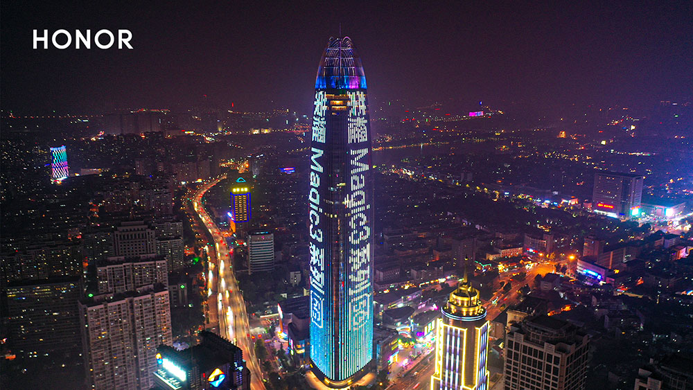 此次新品上市的同時,榮耀公司聯合華途傳媒點亮濟南城市地標媒體燈光秀,提高榮耀magic3的宣傳力度,吸引更多的粉絲,進一步提升活動宣傳力度。