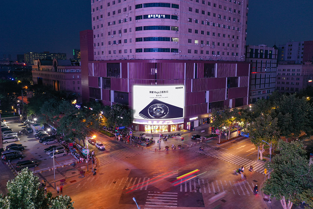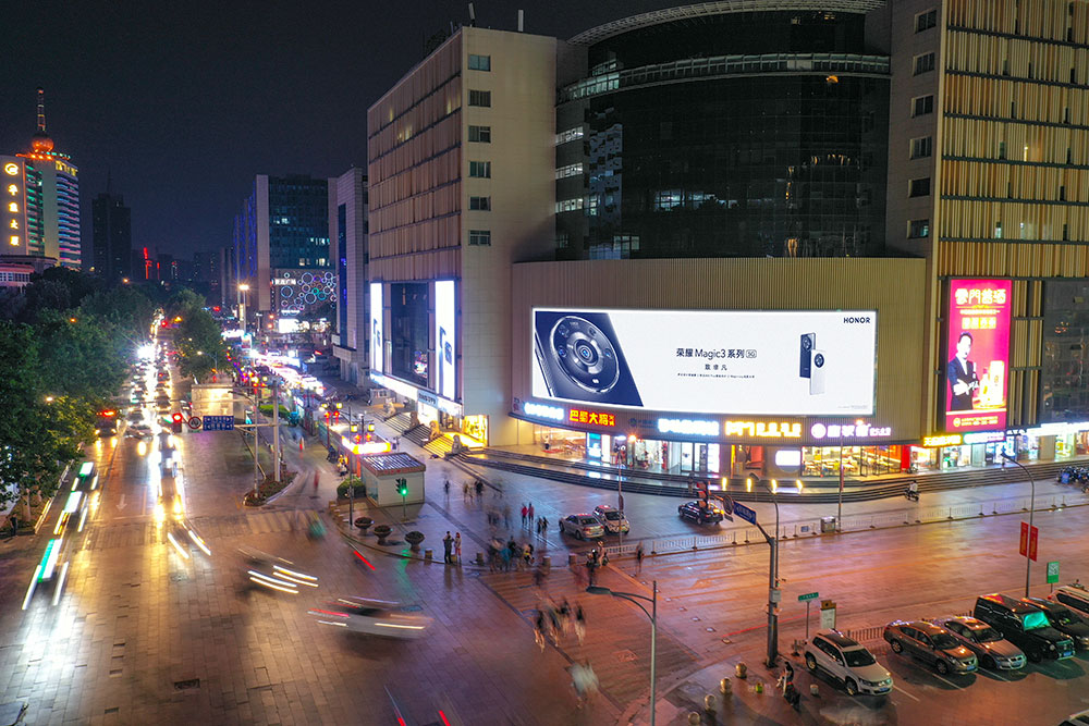 (榮耀手機投放“網紅屏”泉城路世茂廣場戶外LED屏廣告)