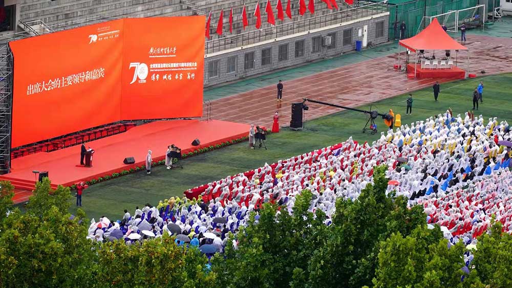 秋日的惠園在煙雨蒙蒙中風光旖旎,盛會的喜慶氛圍充滿校園。體育場上紅旗飄飄,播放著新版宣傳片《心懷國之大者 志篤貿易強國》,講述對外經濟貿易大學70年來與國家共命運、與民族齊奮進、與時代同步伐的光輝歷程。滄桑砥礪七十載,薪火傳承譜新篇。70年來,在為黨育人、為國育才的辦學目標中,貿大人矢志不渝;在服務國家經濟主戰場和國家重大戰略需求,尤其是在改革開放的偉大實踐中,貿大人勇于擔當;在實現中華民族偉大復興的歷史征程中,貿大人奮力爭先。