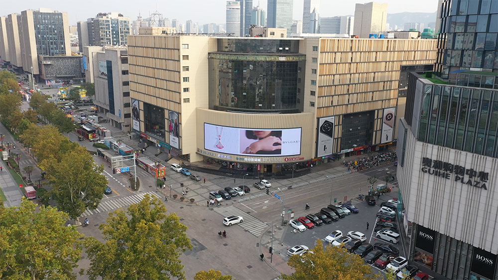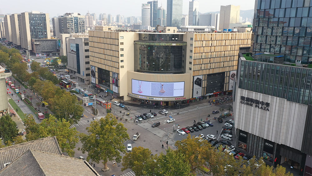 (寶格麗投放“泉眼”泉城路齊魯國際大廈戶外LED屏廣告)