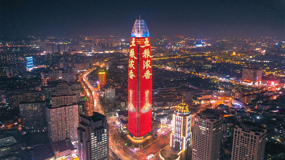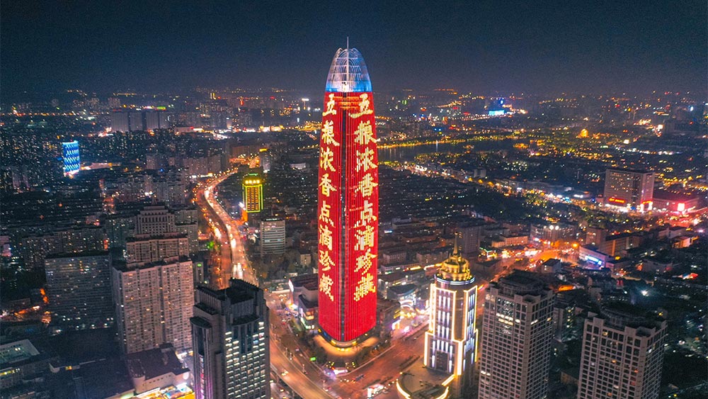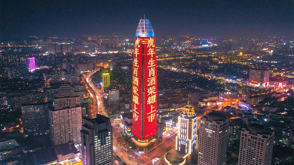 (五糧集團投放濟南地標媒體——濟南綠地中心高媒廣告)