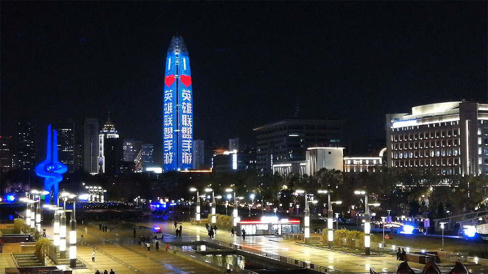 (英雄聯盟投放濟南地標媒體--濟南綠地中心廣告)