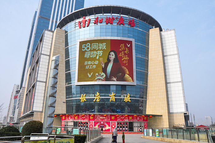 (58同城投放“軍區商圈屏”銀座八一購物廣場戶外LED屏廣告)