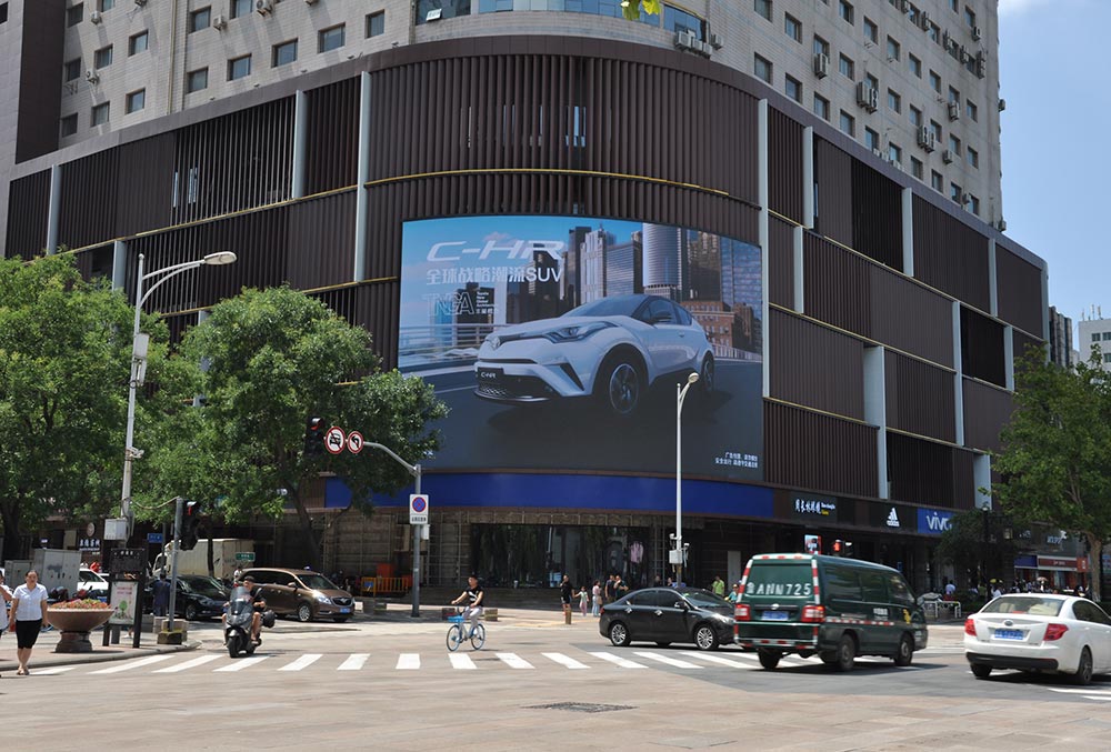 (廣汽豐田投放“省俯”濟南泉城路彩云大廈戶外LED屏廣告)